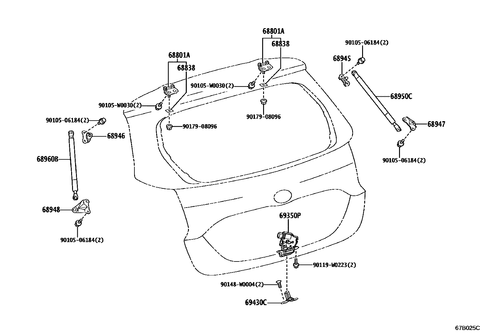 BACK DOOR LOCK & HANDLE — Toyota Parts Diagram with OEM Numbers & Prices | EPC Data