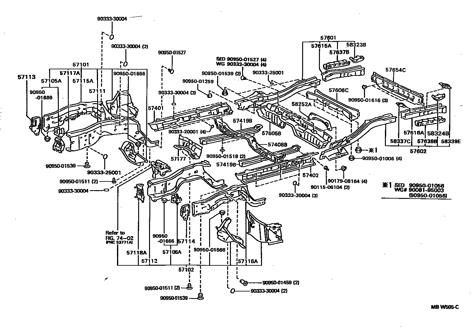 57605BMEMBER SUB-ASSY, REAR FLOOR CROSS, NO.1