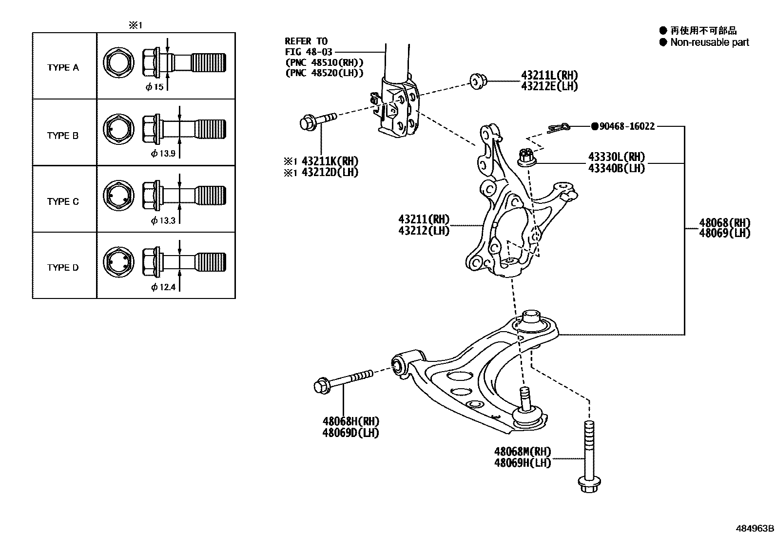48068HBOLT(FOR FRONT SUSPENSION LOWER ARM NO.1 RH)
