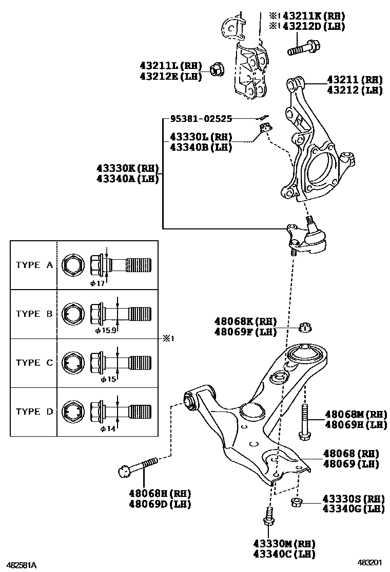 FRONT AXLE ARM & STEERING KNUCKLE — Toyota Parts Diagram with OEM Numbers & Prices | EPC Data