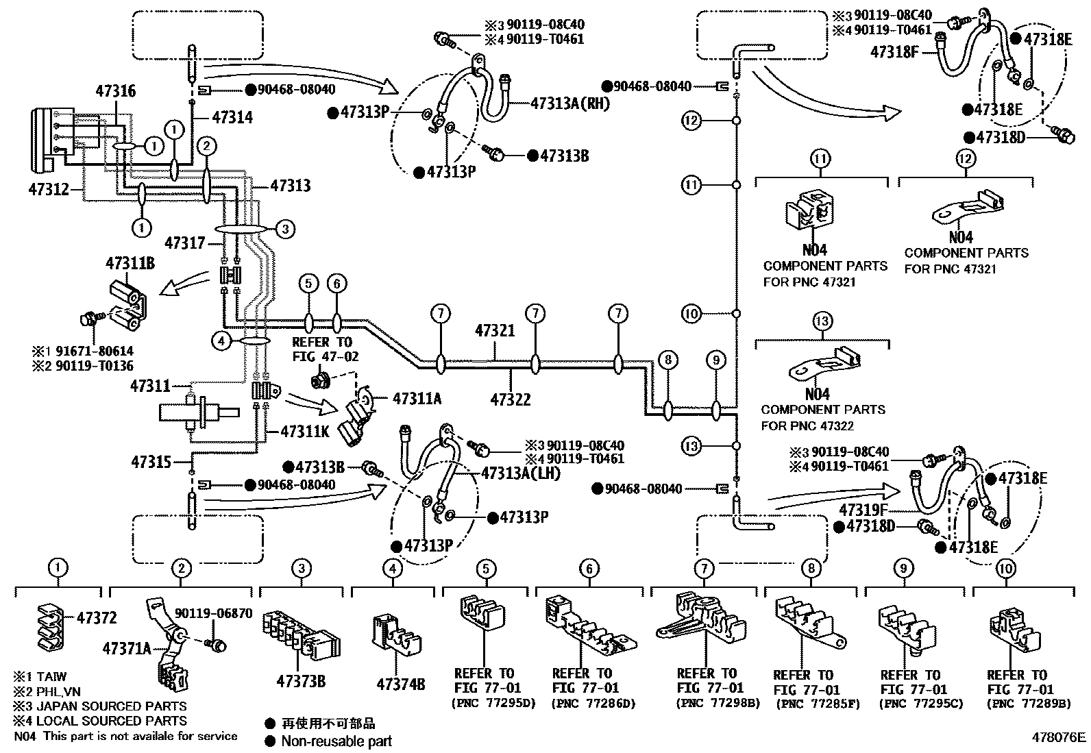 main47389-50021×2iACV51,ASV50;AVV50..IND,TAIW,TH201112-201504 47314TUBE, FRONT BRAKE, NO.4