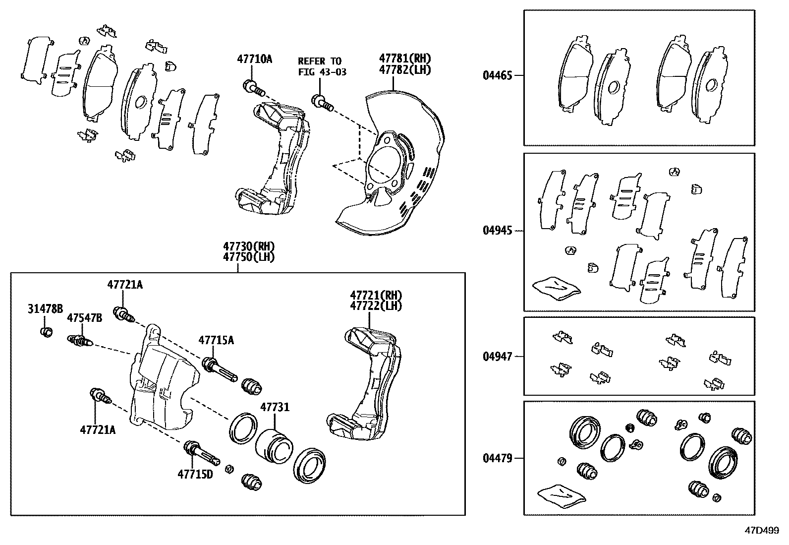 FRONT DISC BRAKE CALIPER & DUST COVER — Toyota Parts Diagram with OEM Numbers & Prices | EPC Data