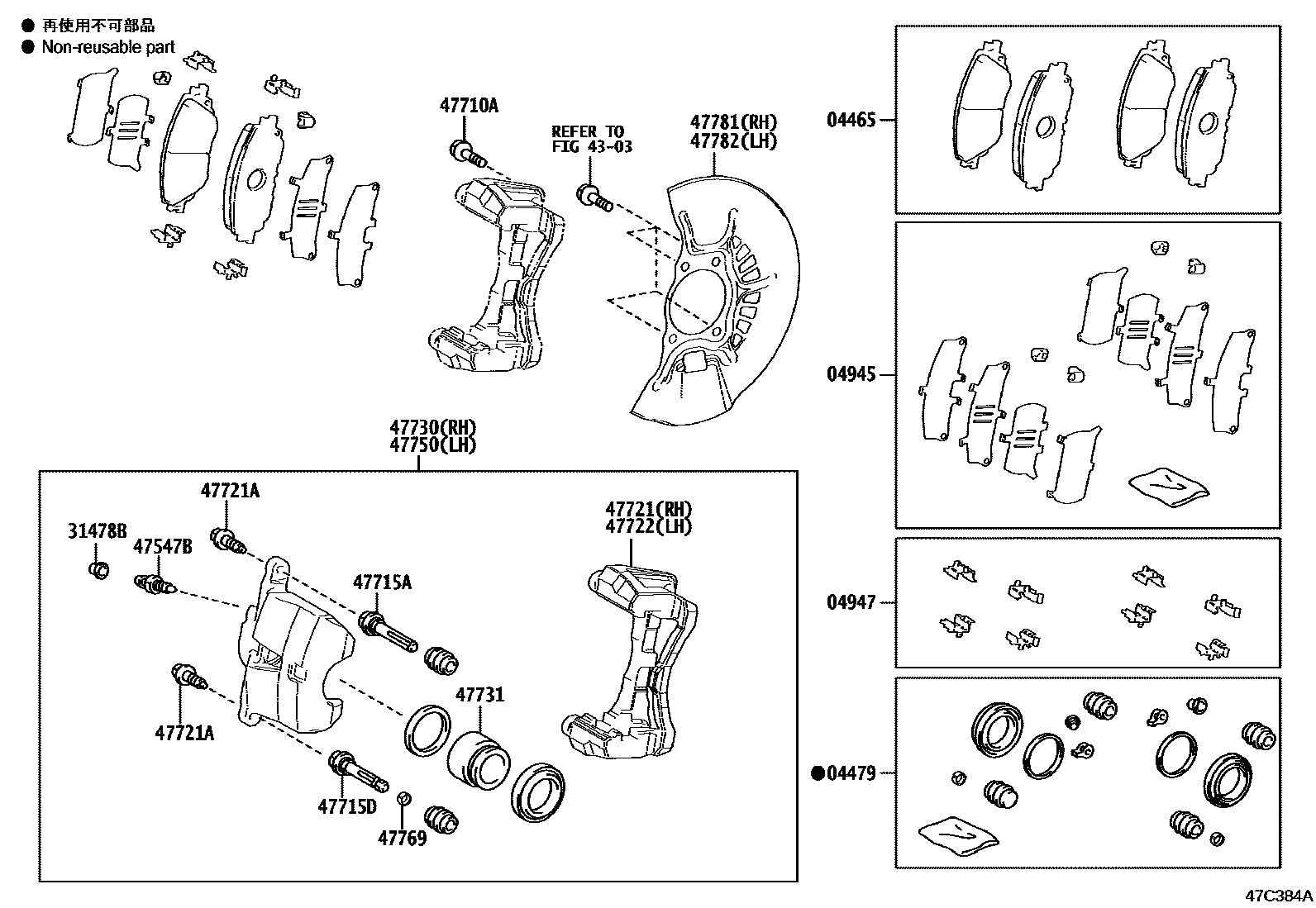 FRONT DISC BRAKE CALIPER & DUST COVER — Toyota Parts Diagram with OEM Numbers & Prices | EPC Data