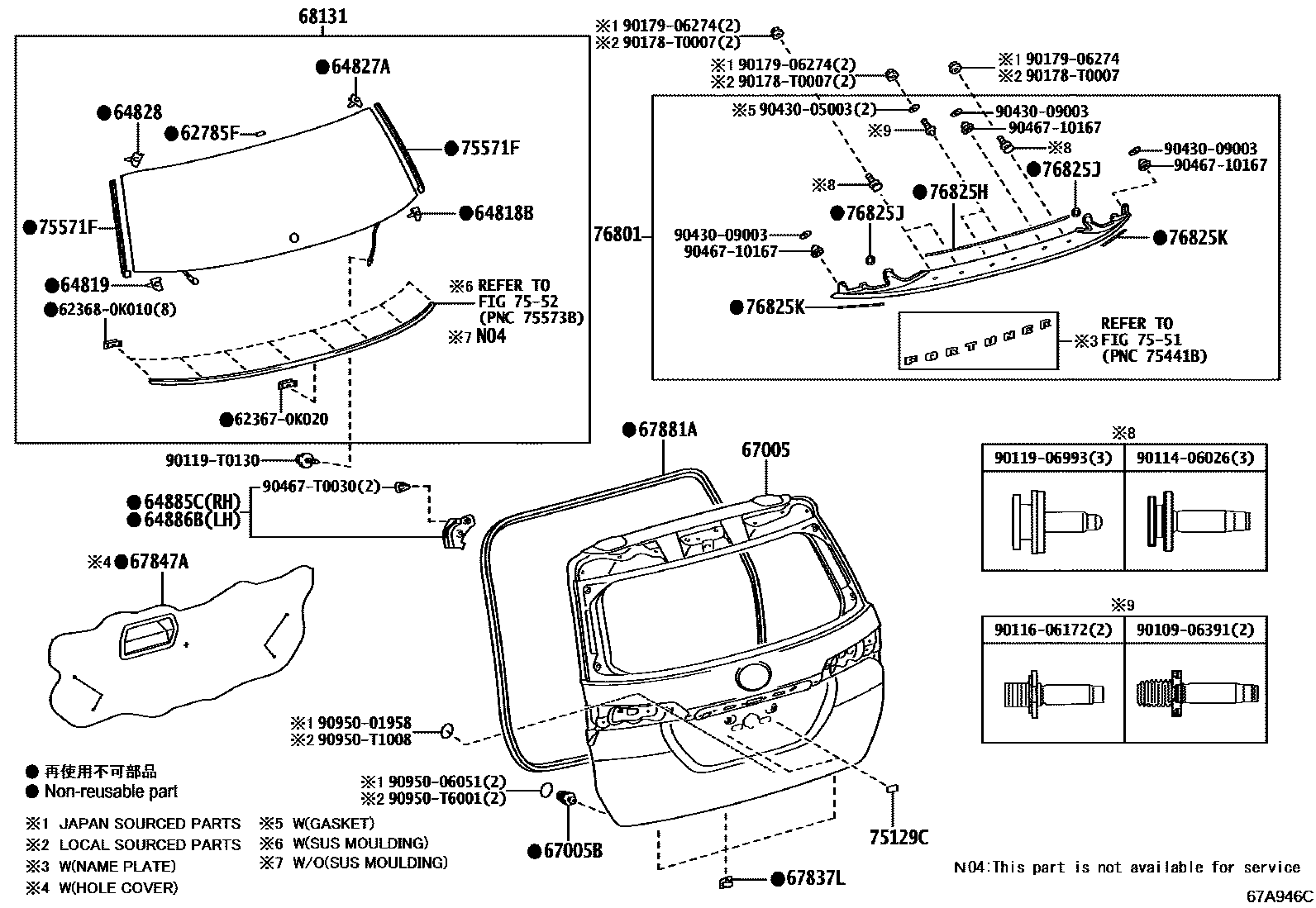 main75129-0K010×2iGGN155,GUN15#,16#,TGN156,166..THSUV202006-202108 main75129-0K020×2iGUN156,165,TGN166..VNSUV202009-202204 75571FMOULDIMG, BACK DOOR WINDOW
