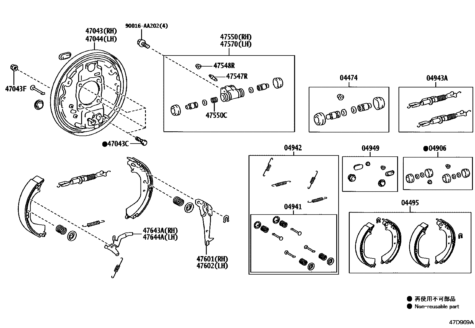 main90016-AY002supersedes 90029-60009iGUN11#,120,121,122,TGN11#,120,121..THP202208-202307 main90069-51002×2iGUN125,126,135,TGN126,136..AGTP202211-202310 47570CYLINDER ASSY, REAR WHEEL BRAKE(FOR LH, FRONT OR UPPER)