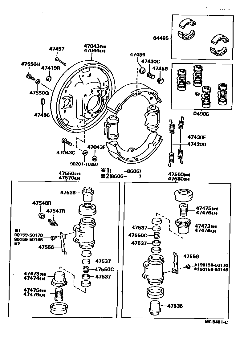 REAR DRUM BRAKE WHEEL CYLINDER & BACKING PLATE — Toyota Parts Diagram with OEM Numbers & Prices | EPC Data
