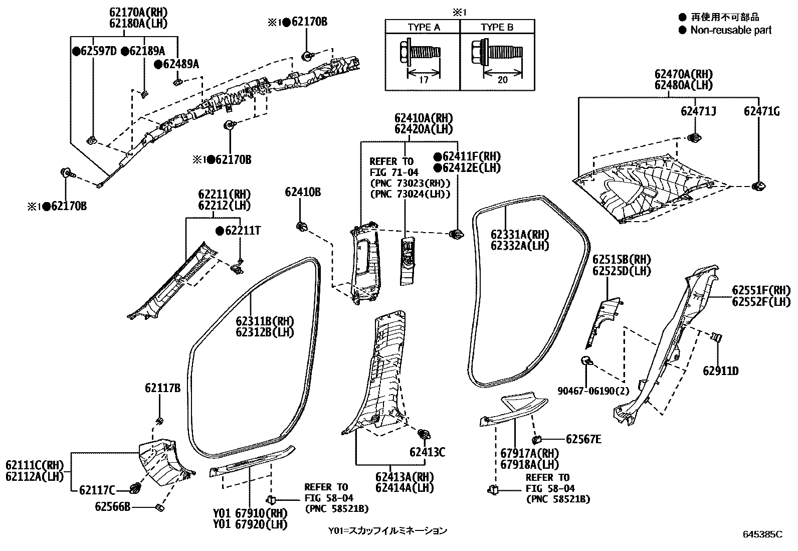 62411FCLIP, CENTER PILLAR GARNISH, RH