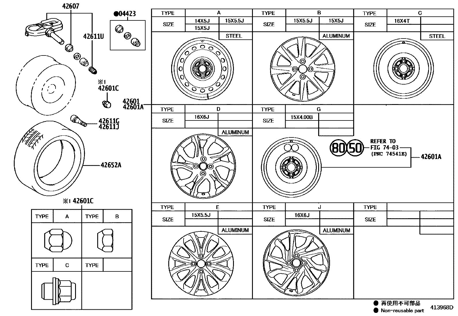 15X5.5J, #,TIRE & DISC WHEEL-P175/65R15 ALL SEASON TIRE 5J ALUMINUM,TYPE B:REFER ILLUST.