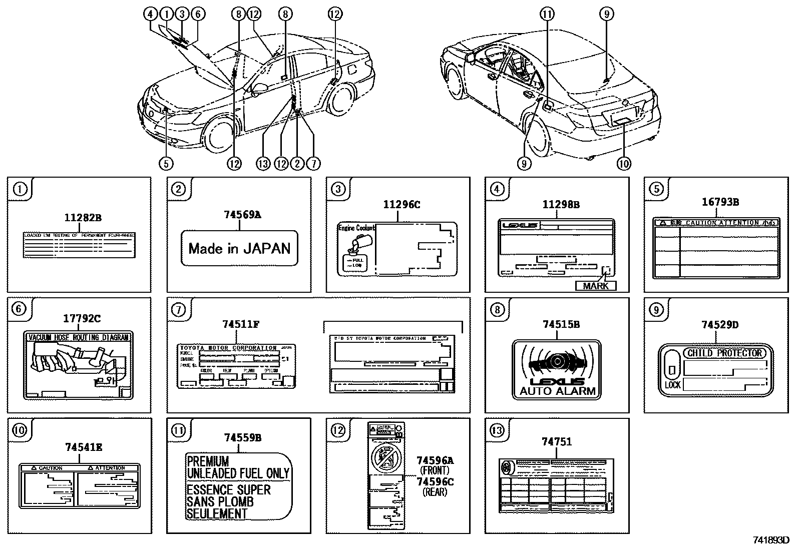 74596CLABEL, SIDE AIRBAG CAUTION, NO.2