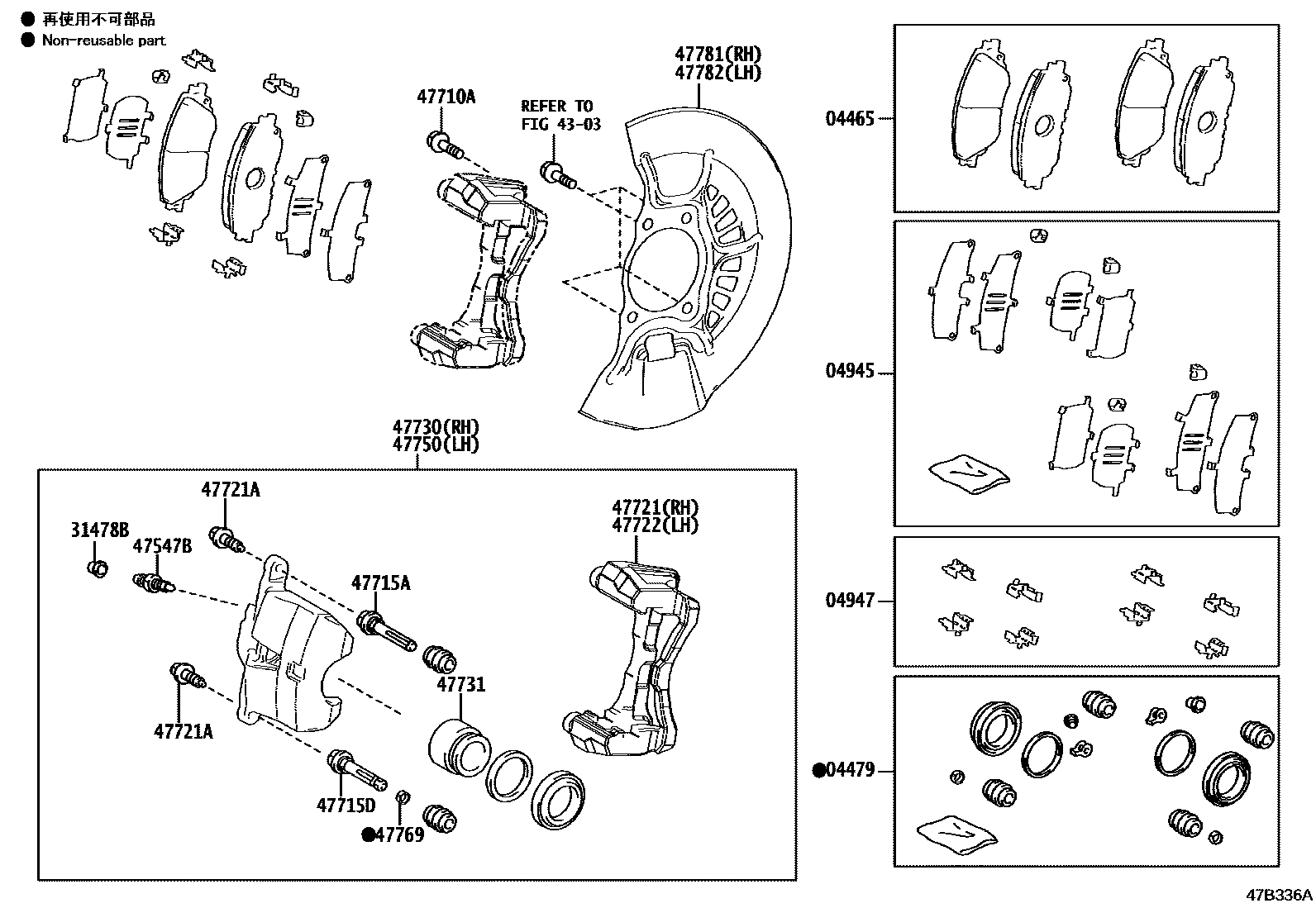 FRONT DISC BRAKE CALIPER & DUST COVER — Toyota Parts Diagram with OEM Numbers & Prices | EPC Data