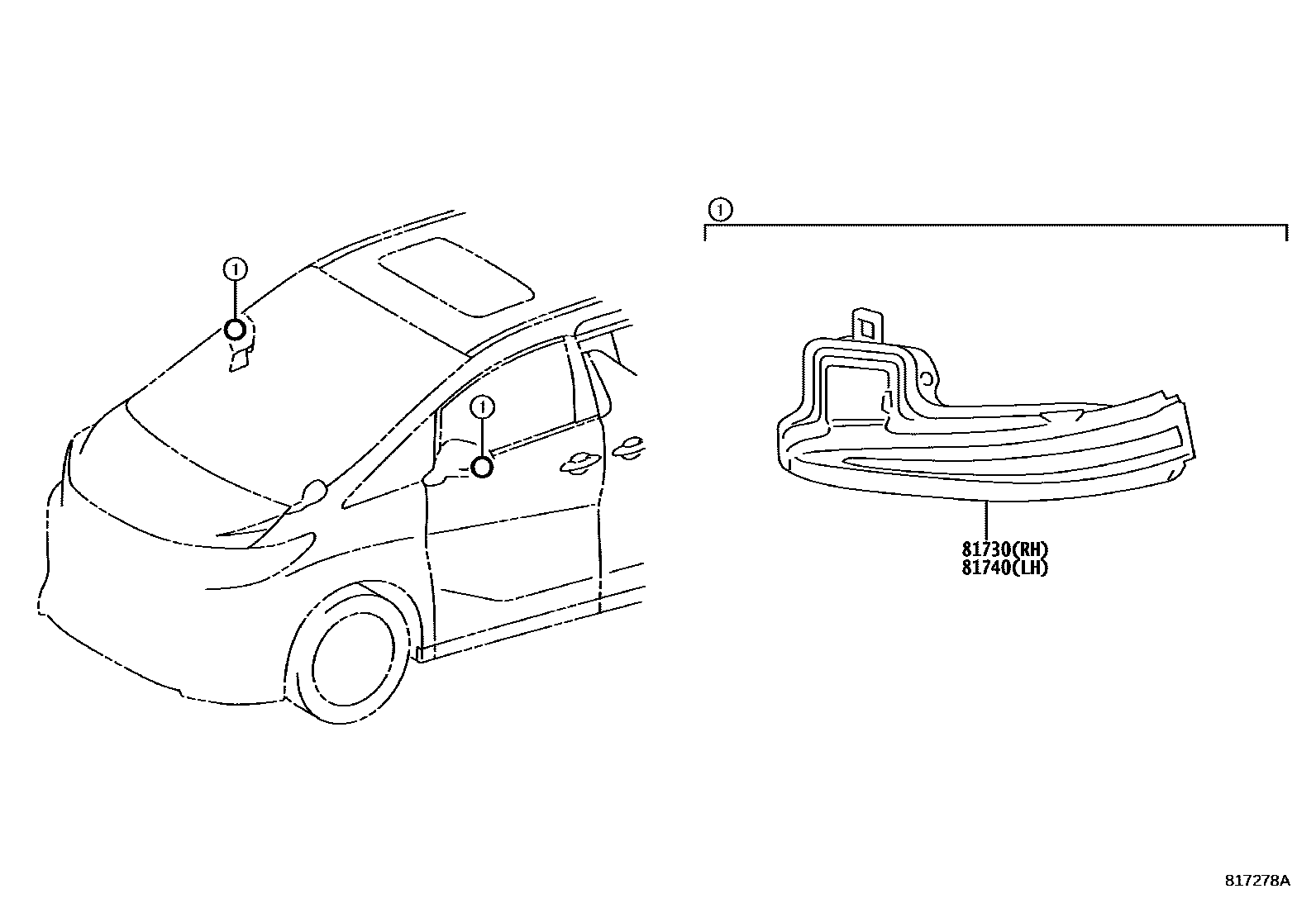 Toyota ALPHARD/VELLFIRE/HV SIDE TURN SIGNAL LAMP & OUTER MIRROR LAMP — Parts Diagram | EPC Data