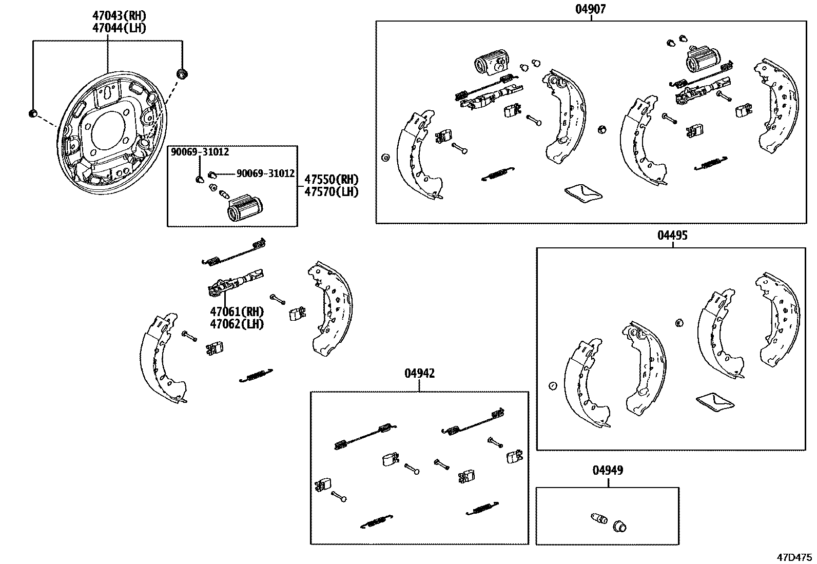 47062STRUT SET, PARKING BRAKE SHOE, LH