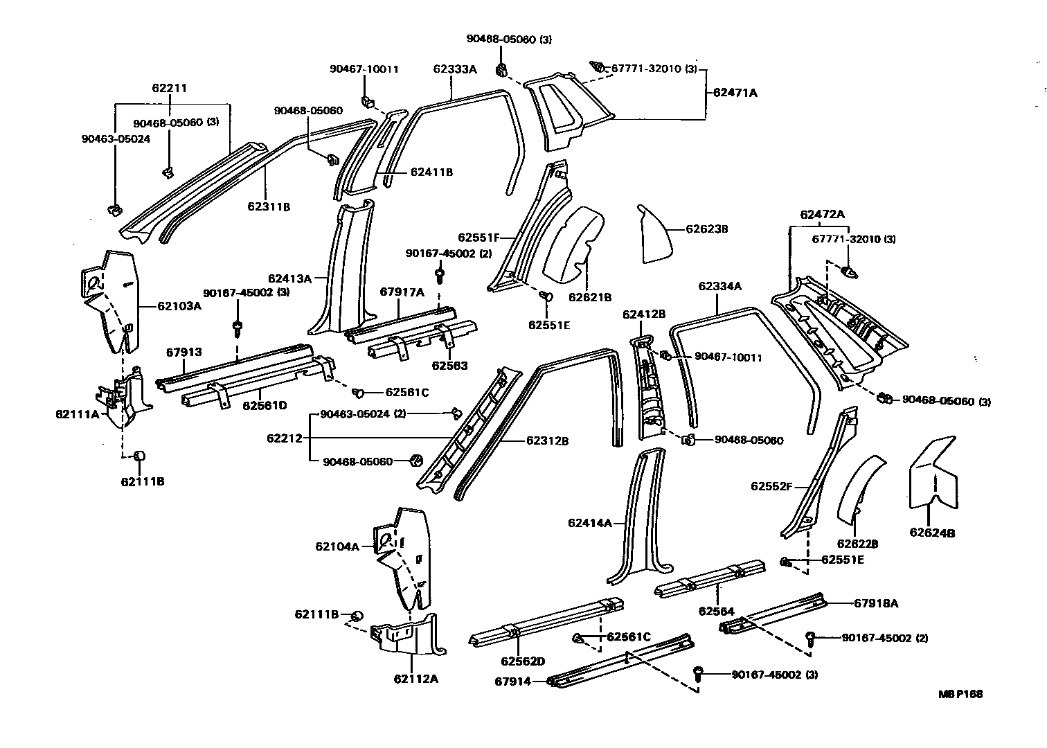 62411BGARNISH, CENTER PILLAR, UPPER RH
