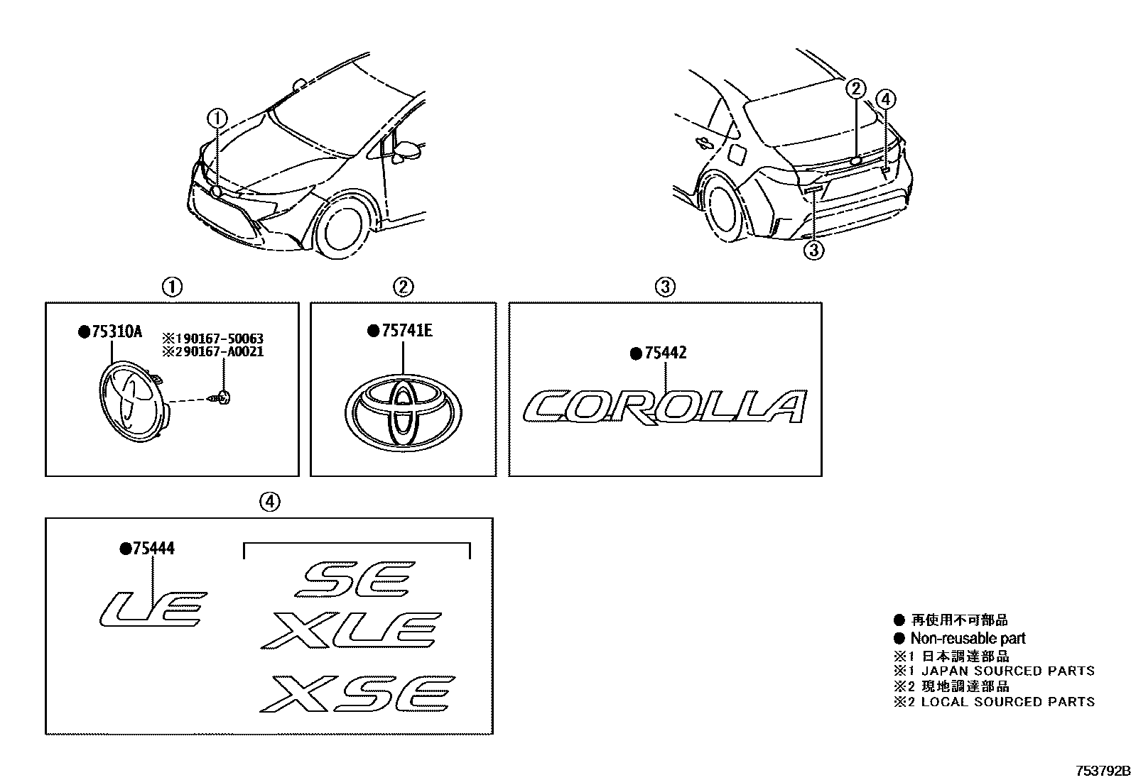 Toyota COROLLA SED (NAP) — EMBLEM & NAME PLATE (EXTERIOR & INTERIOR)