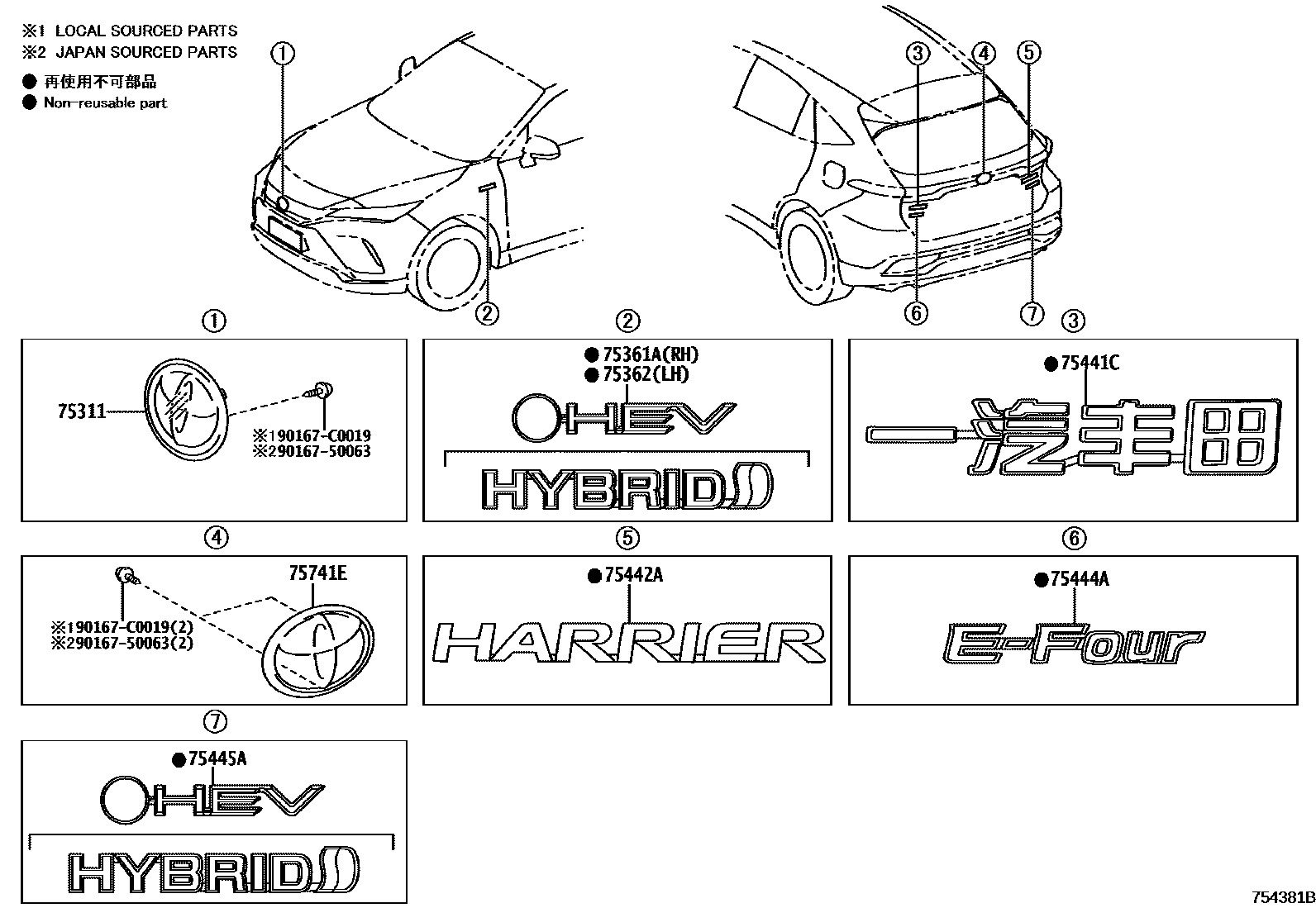 Toyota HARRIER/HEV (CHINA) — EMBLEM & NAME PLATE (EXTERIOR & INTERIOR)