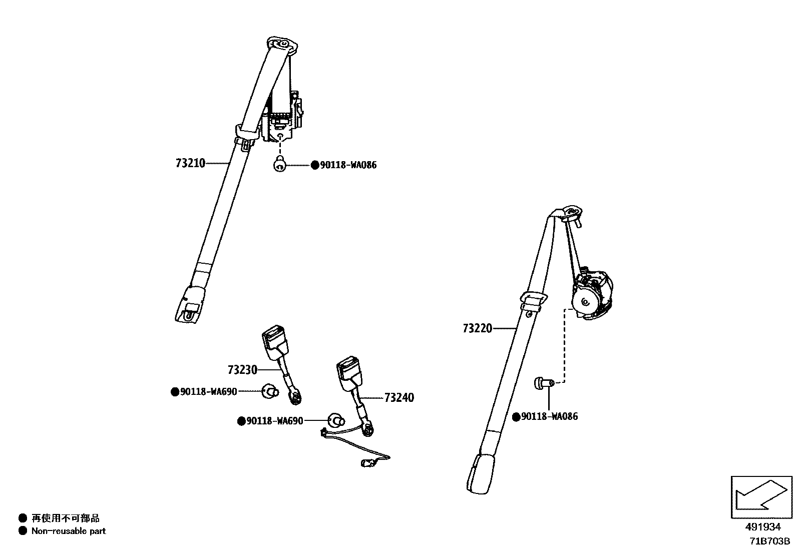 73210BELT ASSY, FRONT SEAT OUTER, RH