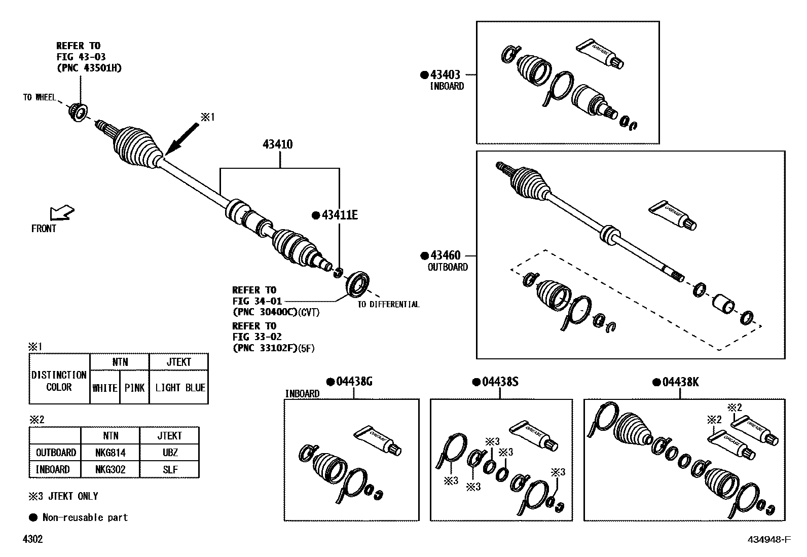 43403JOINT SET, FRONT AXLE INBOARD, RH
