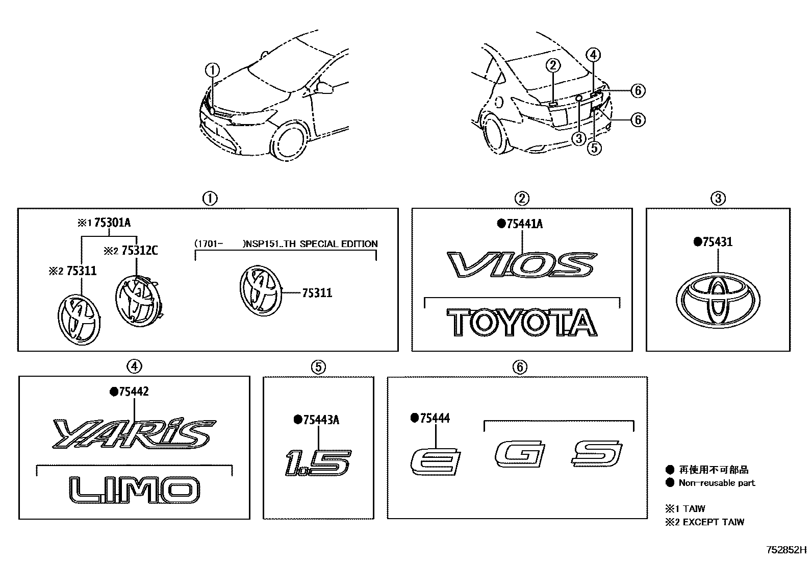 Toyota YARIS/VIOS/LIMO — EMBLEM & NAME PLATE (EXTERIOR & INTERIOR)